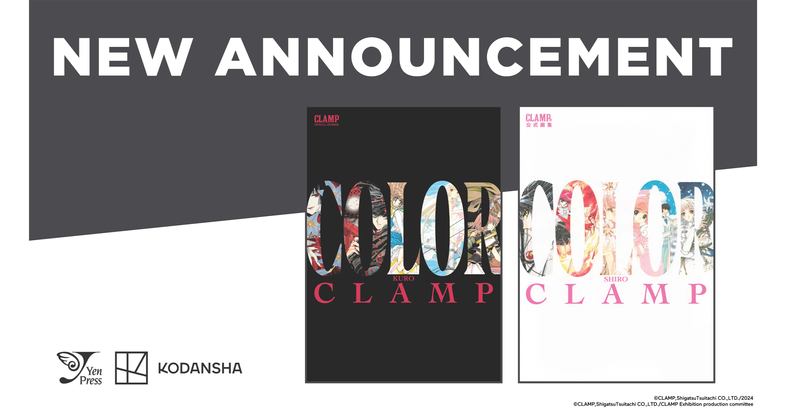 Yen Press, LLC and Kodansha USA Publishing, LLC announced the respective acquisitions of the dual CLAMP Official Art Books for release this November. The art books, named KURO (which will be published by Yen Press) and SHIRO (which will be published by Kodansha), were created as companions to the CLAMP Exhibition that ran at The National Art Center in Tokyo, Japan, from July 2024 to September 2024 and feature the more than 200 original drawings displayed.